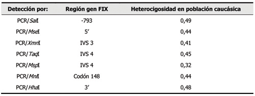 A diferencia del gen FVIII, existe una marcada variación étnica respecto al grado de heterocigosidad de los polimorfismos del gen FIX, por lo que la elección de los mismos ha de estar condicionada por el origen racial (Goodeve, 1998).
